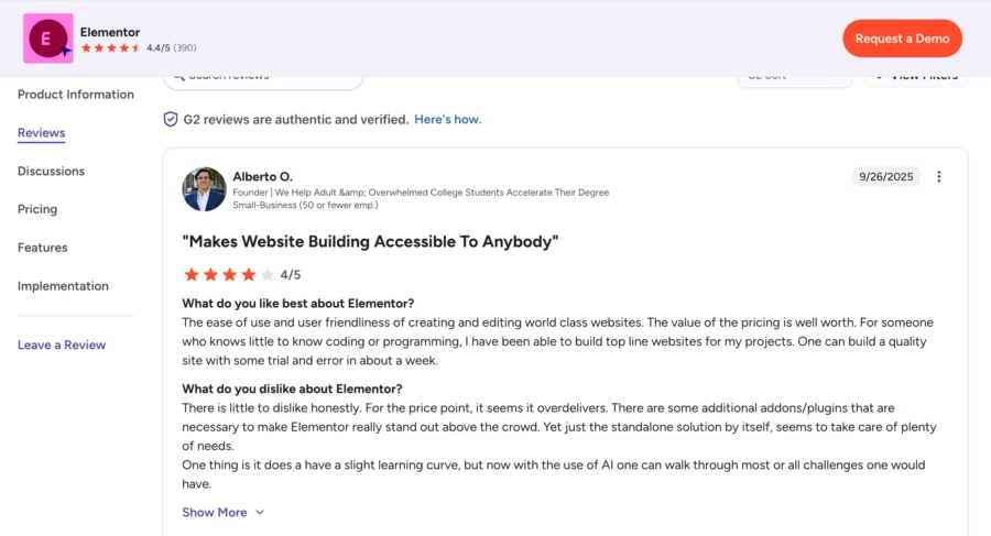 When it comes to Elemetor Cloud reviews, the platform has a huge fan following. It is one of the highest-rated website builders and is hosted on a trusted platform like G2 and Trustpilot.
