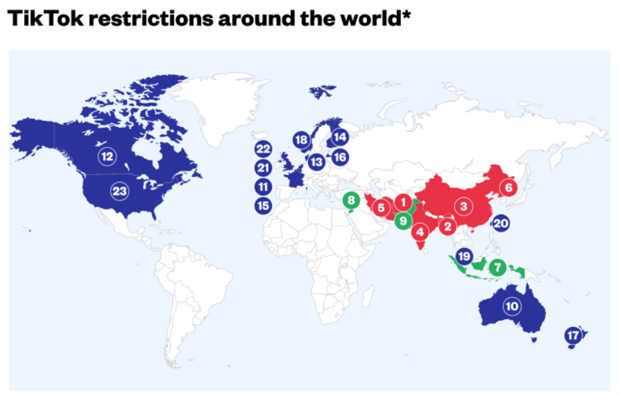 TikTok has been completely banned in 23 countries around the world and faces partial bans in some other countries as well, on federal/government-issued devices.